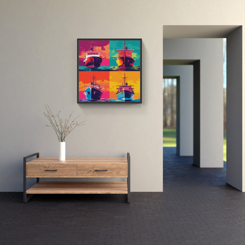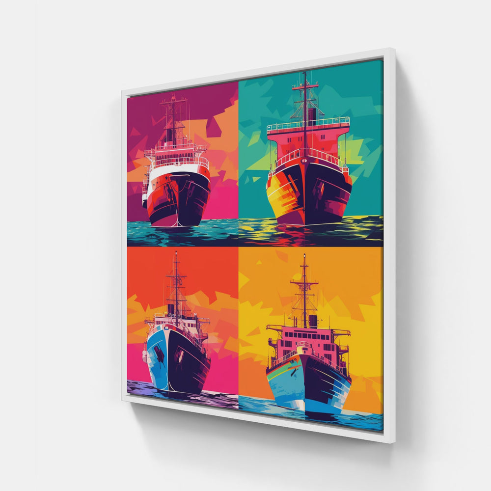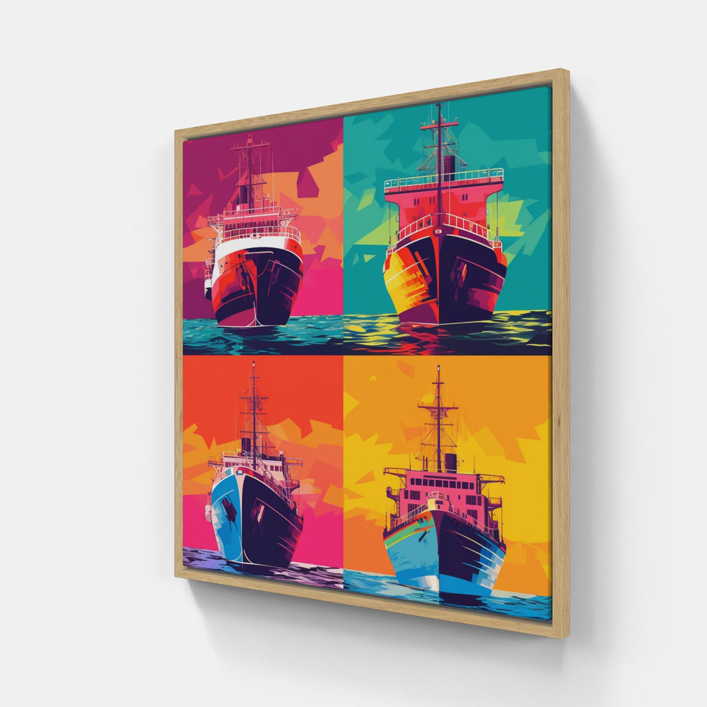 Naviguez avec style grâce à cette exquise canva imprimée inspirée d'un bateau. Son imagerie élégante et ses couleurs nautiques créent une ambiance sophistiquée et côtière.