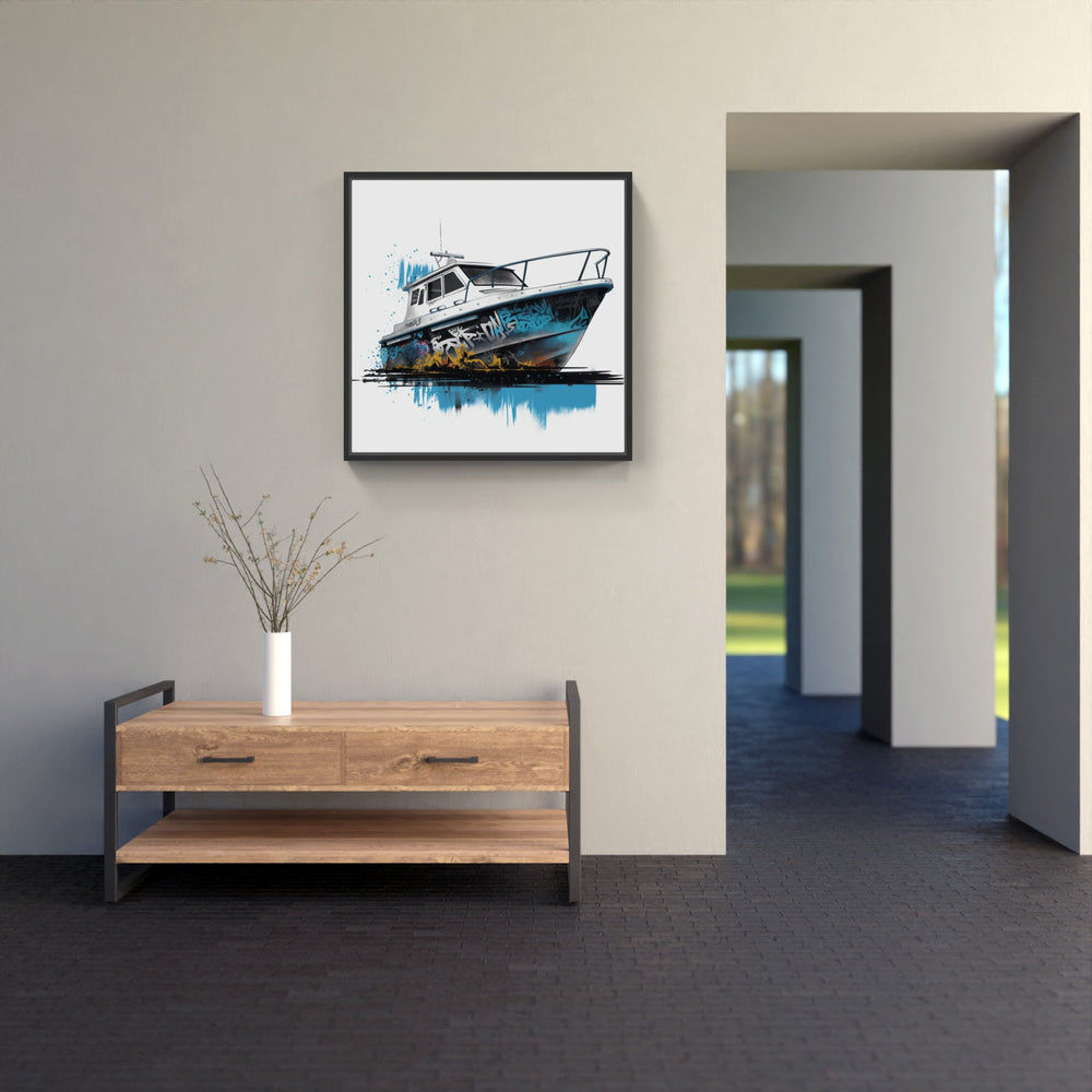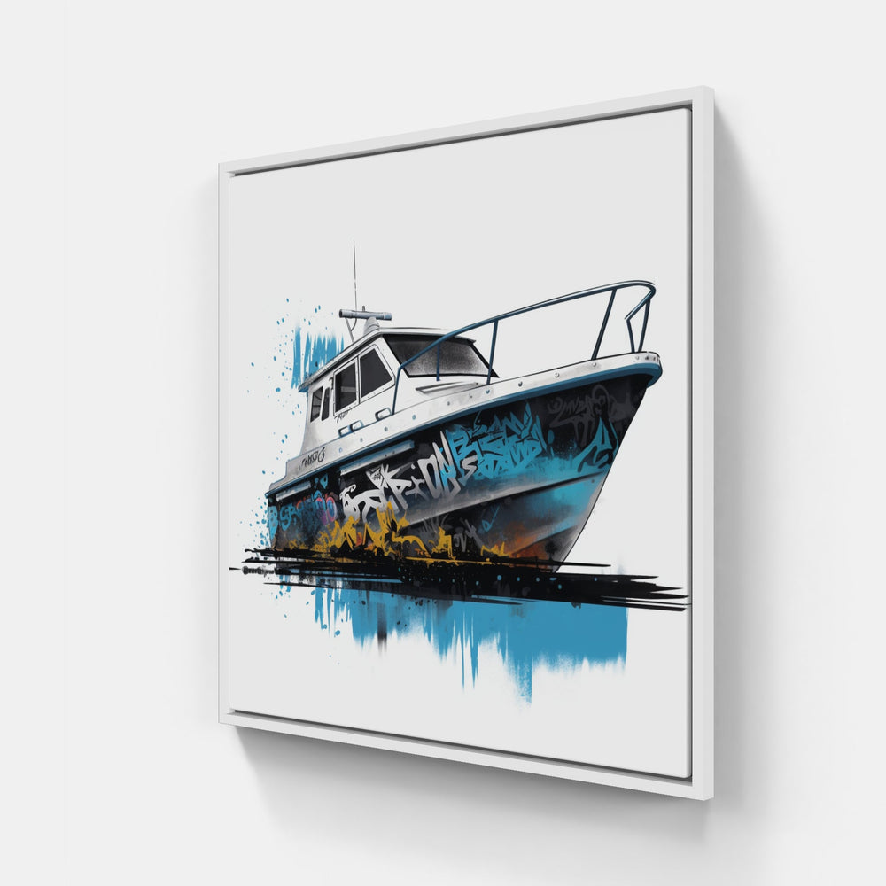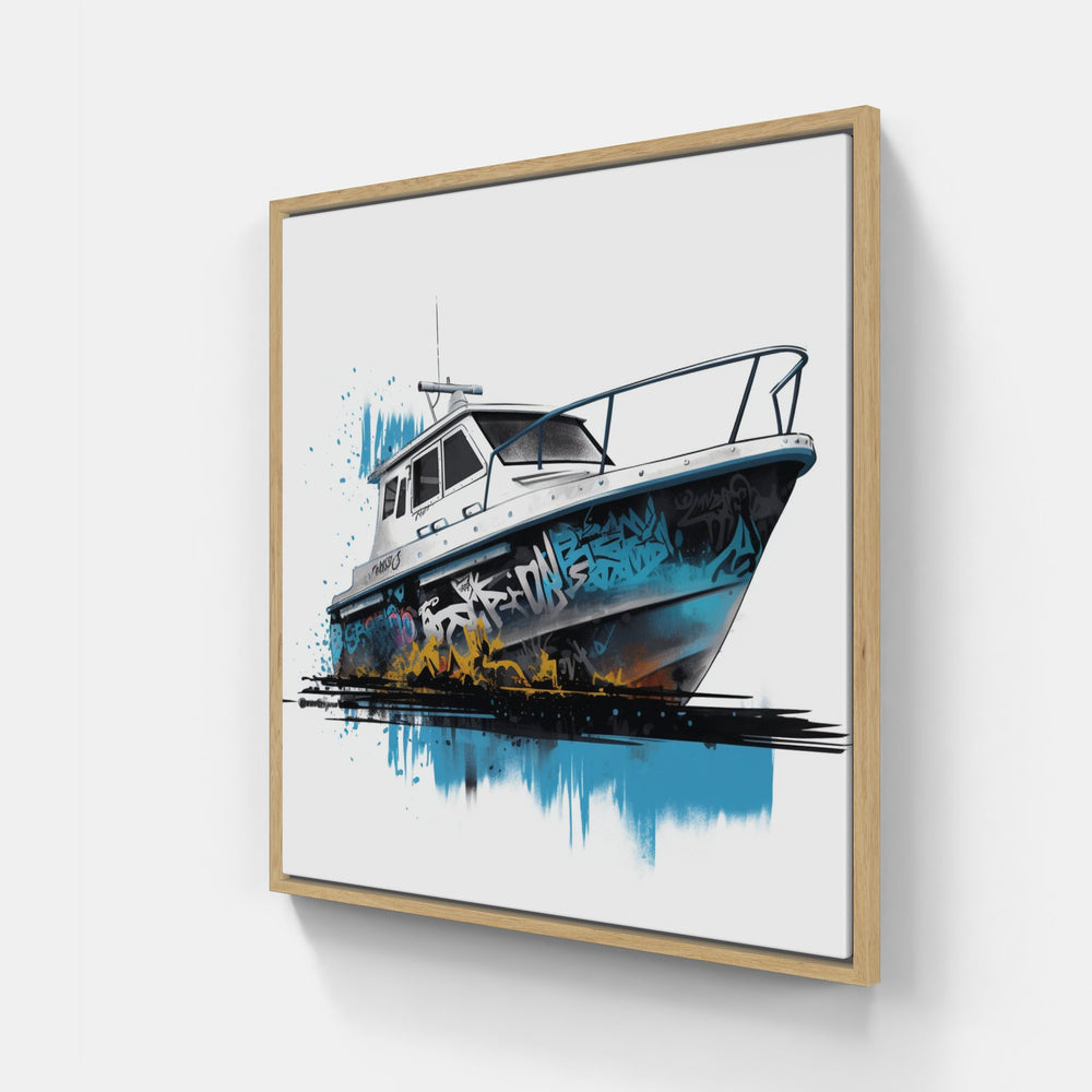 Plongez dans l'ambiance côtière avec cette superbe canva imprimée inspirée d'un bateau. Laissez les douces vagues et les couleurs apaisantes vous transporter dans un paradis marin.