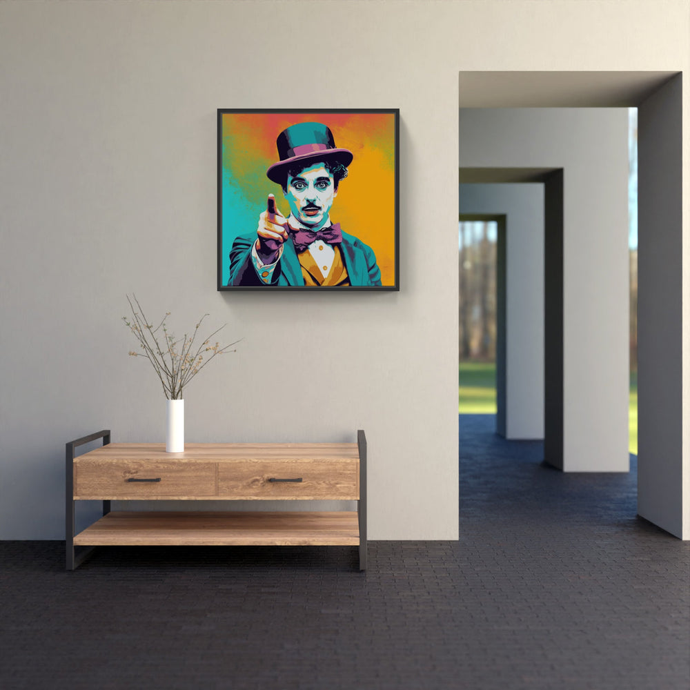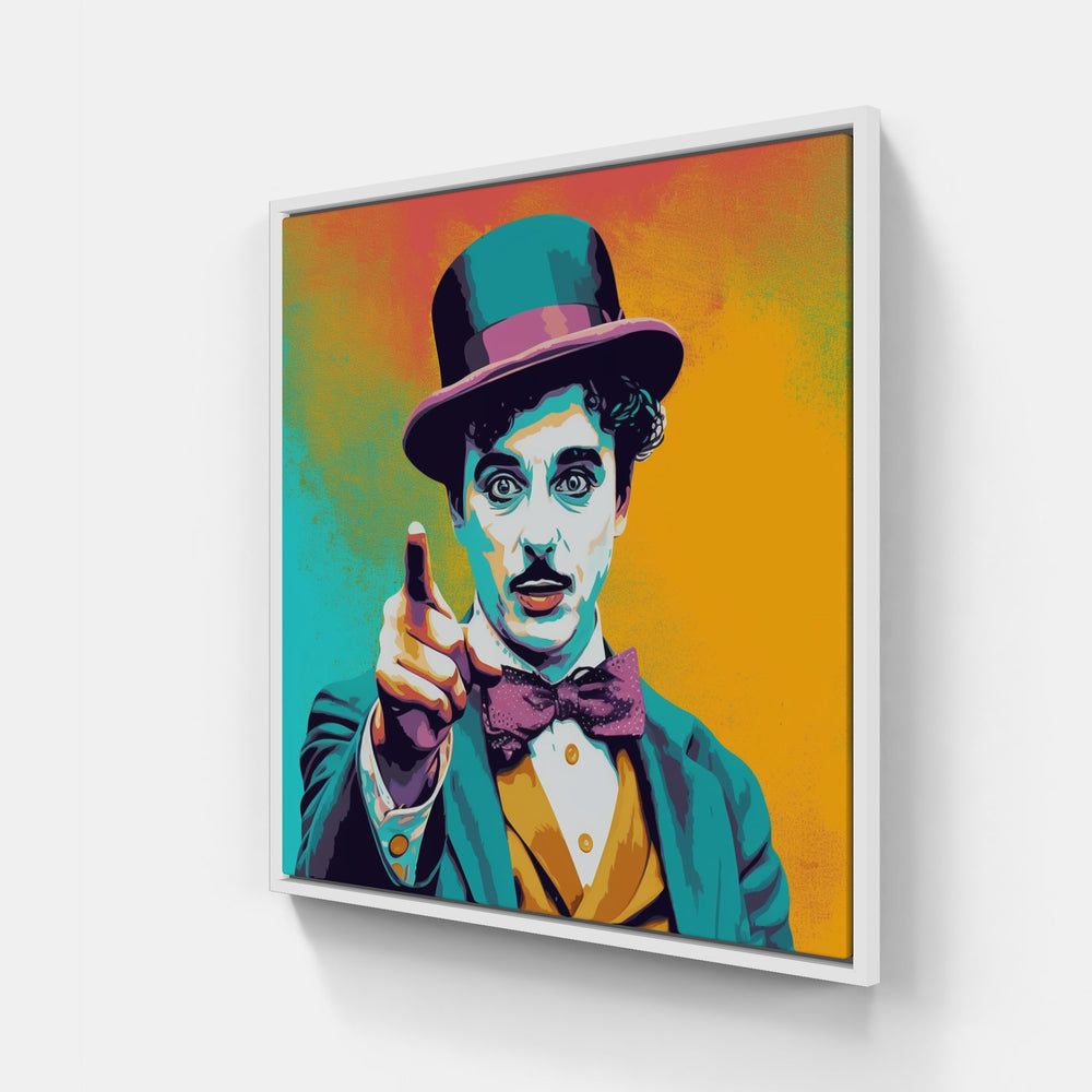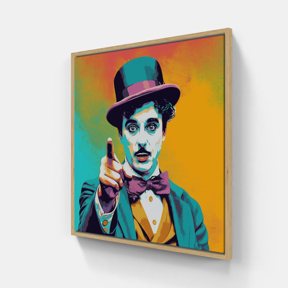 Chaplin intemporel ressuscité : Notre canva imprimée Pop Art Chaplin capture l'humour et le charisme dans un hommage vibrant à la culture pop.