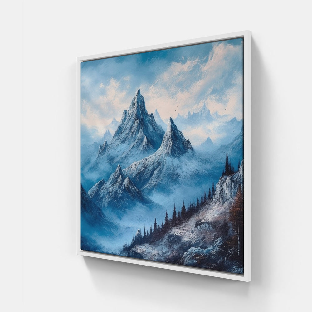 Le sommet d’une montagne majestueuse dans un format carré puissant. Pour celles et ceux qui veulent un impact fort dans leur pièce de vie.