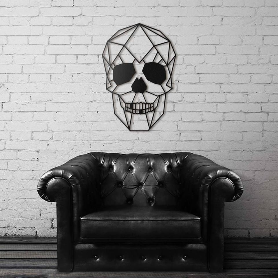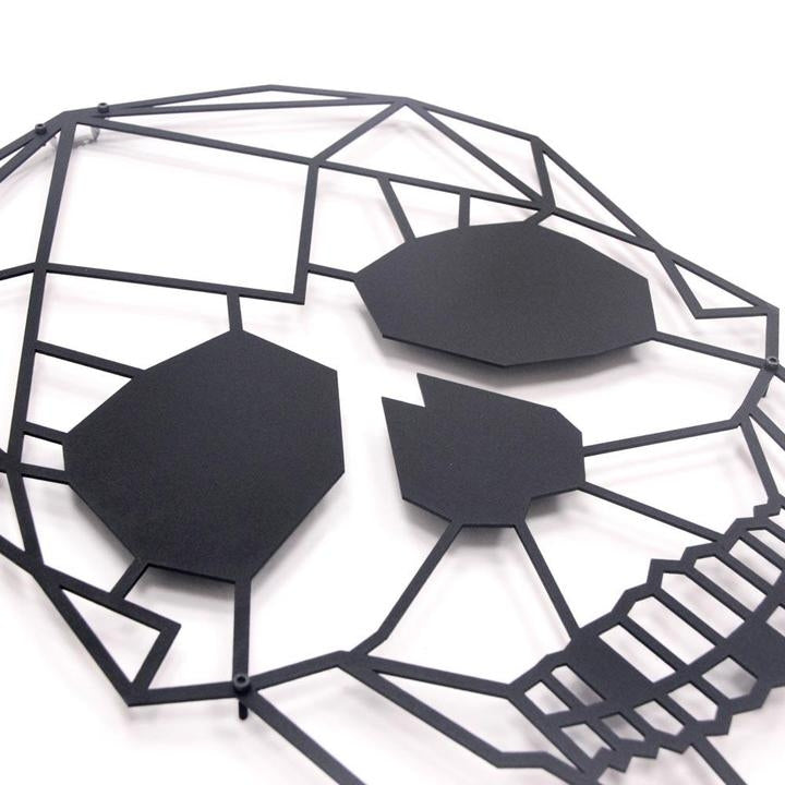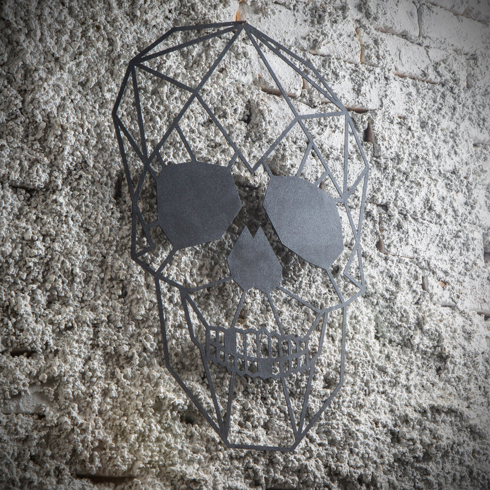Integrate a unique contemporary touch in your lounge or bedroom with this metal wall decoration of a stylized skull. The geometrical and modern aspect of the lines of this skull design metal sculpture will create a really original wall. You can also couple it with another modern wall decoration available at Artwall and Co. This wall deco skull does not need much room in your office or else where to brighten up the room and spare some floor room. All our metal wall decorations are hand made by our creators and treated with a black finish for a long lasting quality. This skull metal wall decoration is delivered in a protective cardboard box with foam wrapping for a safer delivery.