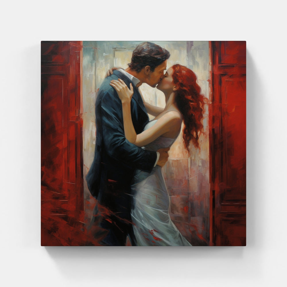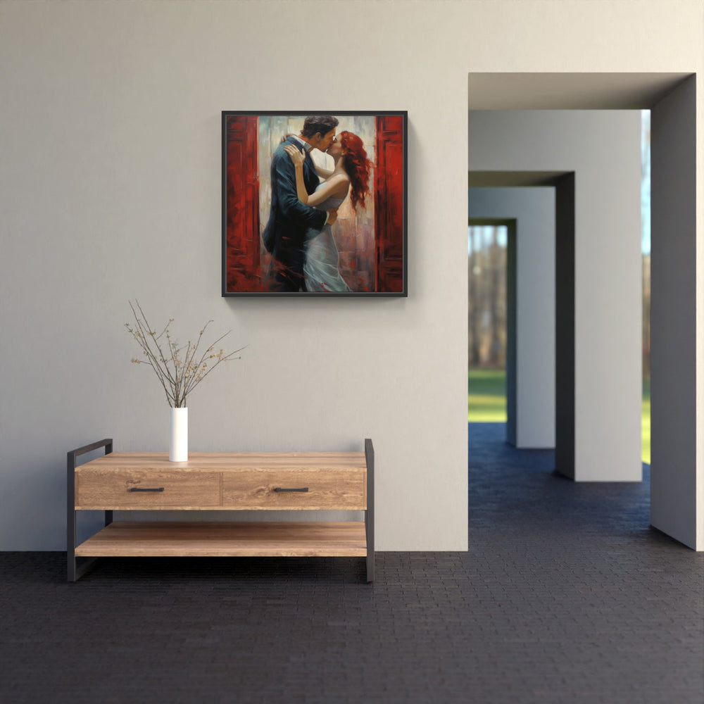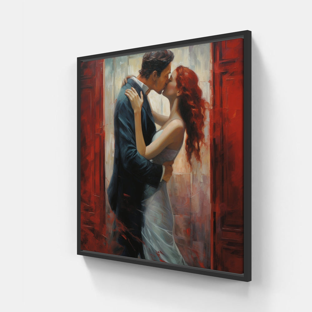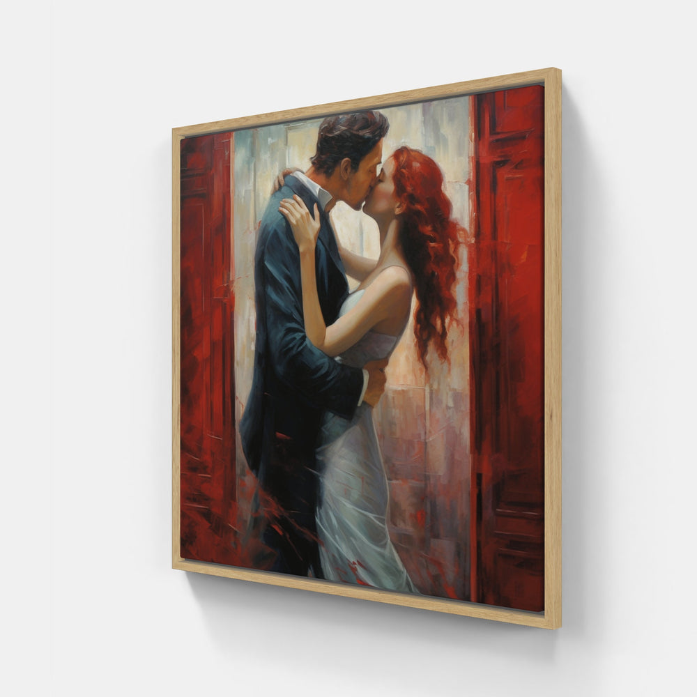 Connexion passionnée capturée sur canva imprimé : homme et femme s'embrassant. Célébrez la beauté de l'amour et rehaussez votre espace.