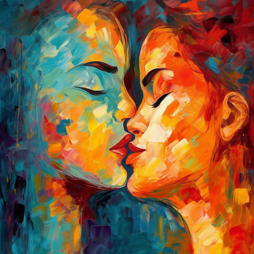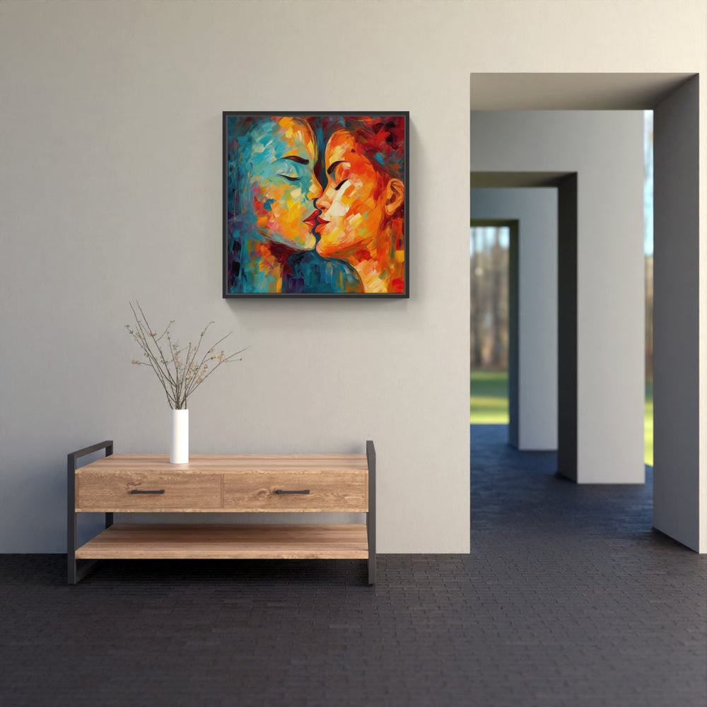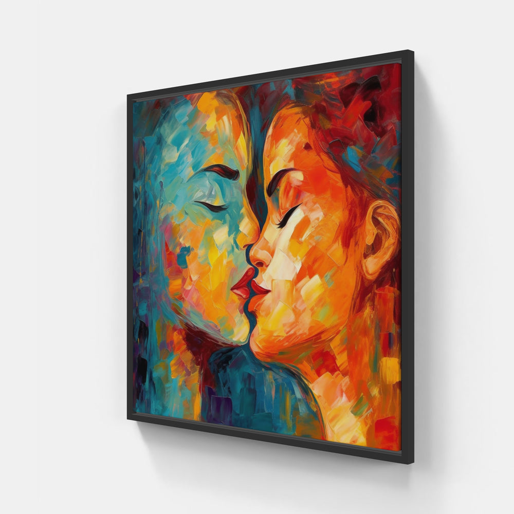 Affection éternelle : baiser homosexuel sur canva imprimé. Célébrez l'essence de l'amour et créez une atmosphère accueillante dans votre maison.