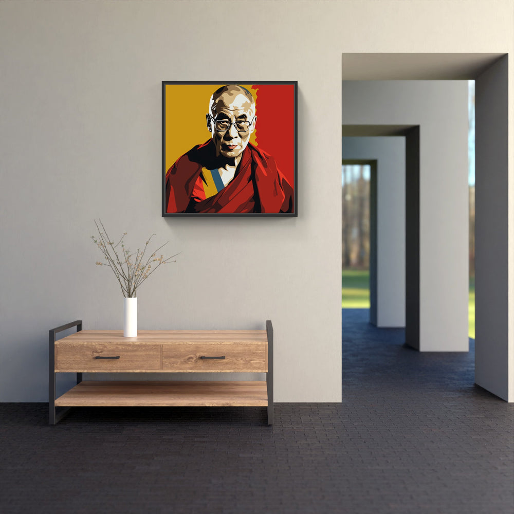 Le Dalaï Lama spirituel transformé : Notre canva imprimé Pop Art Dalai Lama rayonne de sagesse et de compassion dans un hommage vibrant à la culture pop.