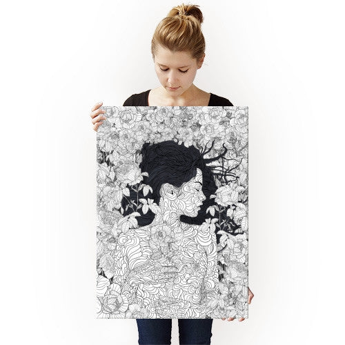 Black and white metal poster for zen and modern interiorPedro Tapa is an artist living in the Philippines. Before making a living from his creations, he worked in the field of advertising. His works are always very poetic, hand-drawn from a multitude of black lines that intertwine to form a feminine and floral motif that you can see on this wall poster. The line drawing style is as sophisticated as it is trendy. Your metal poster will not suffer the deterioration of time, it will remain impeccable even hanging in full sun thanks to its protective treatment. We deliver the metal poster with a magnetic attachment system, really easy to install. Just stick the magnet on the wall, adhere the metal poster, you just have to admire your Black and White poster.