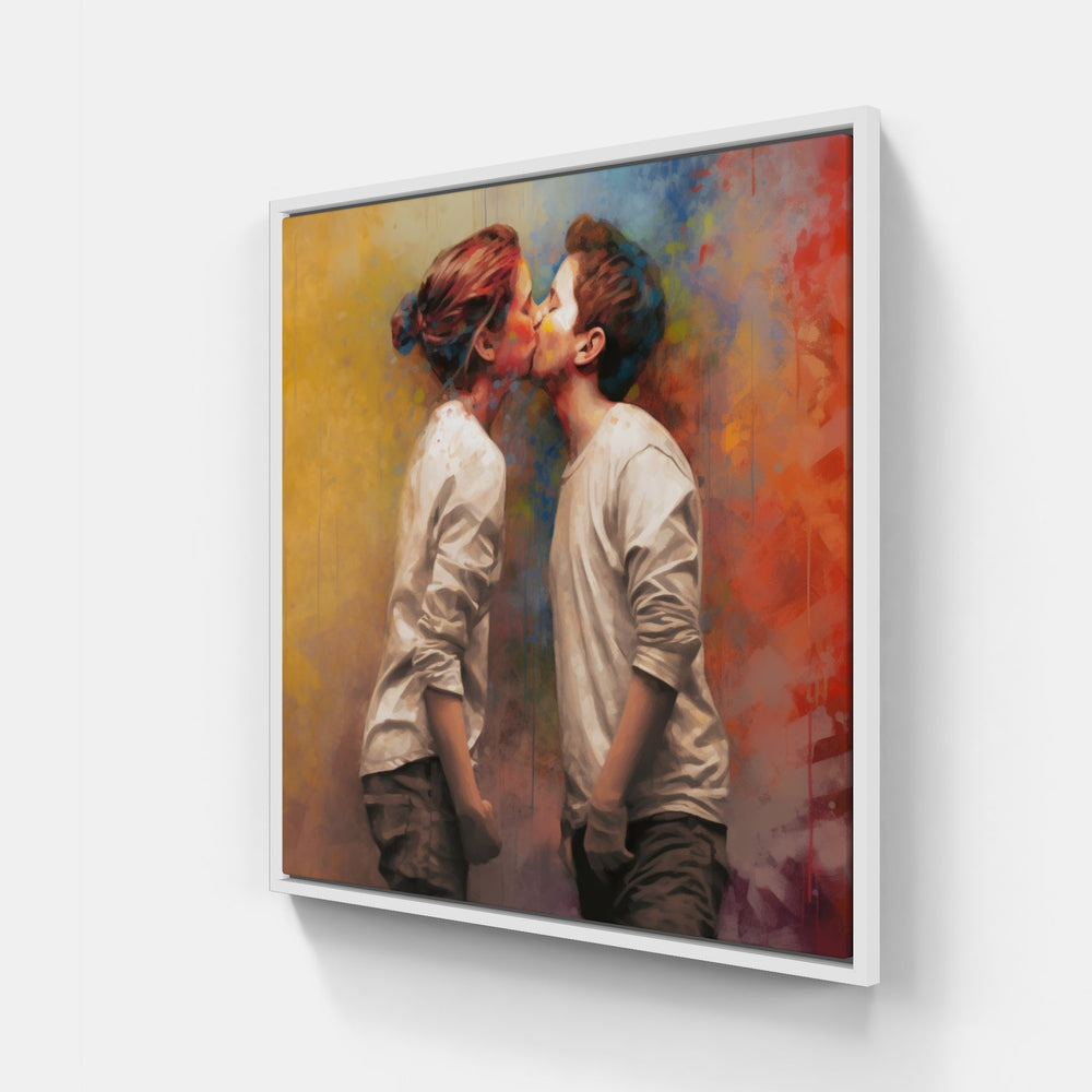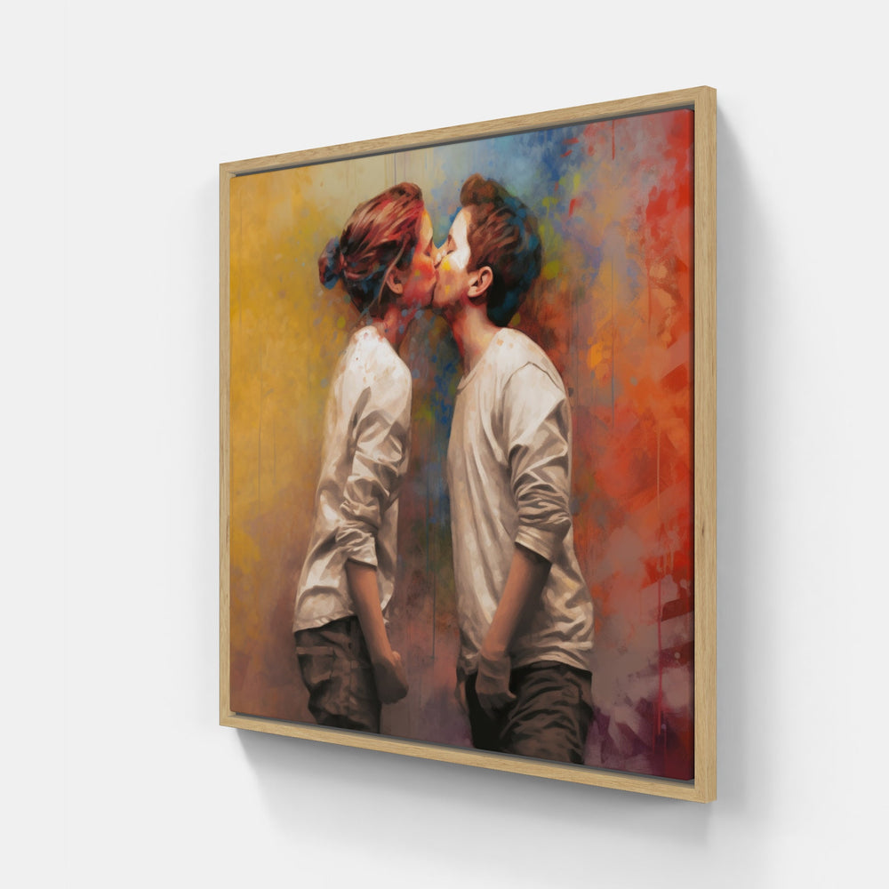 Moment précieux : baiser gay sur canva imprimé. Infusez de l'amour dans votre maison et créez une atmosphère accueillante avec cette œuvre d'art touchante.