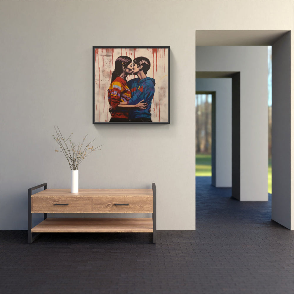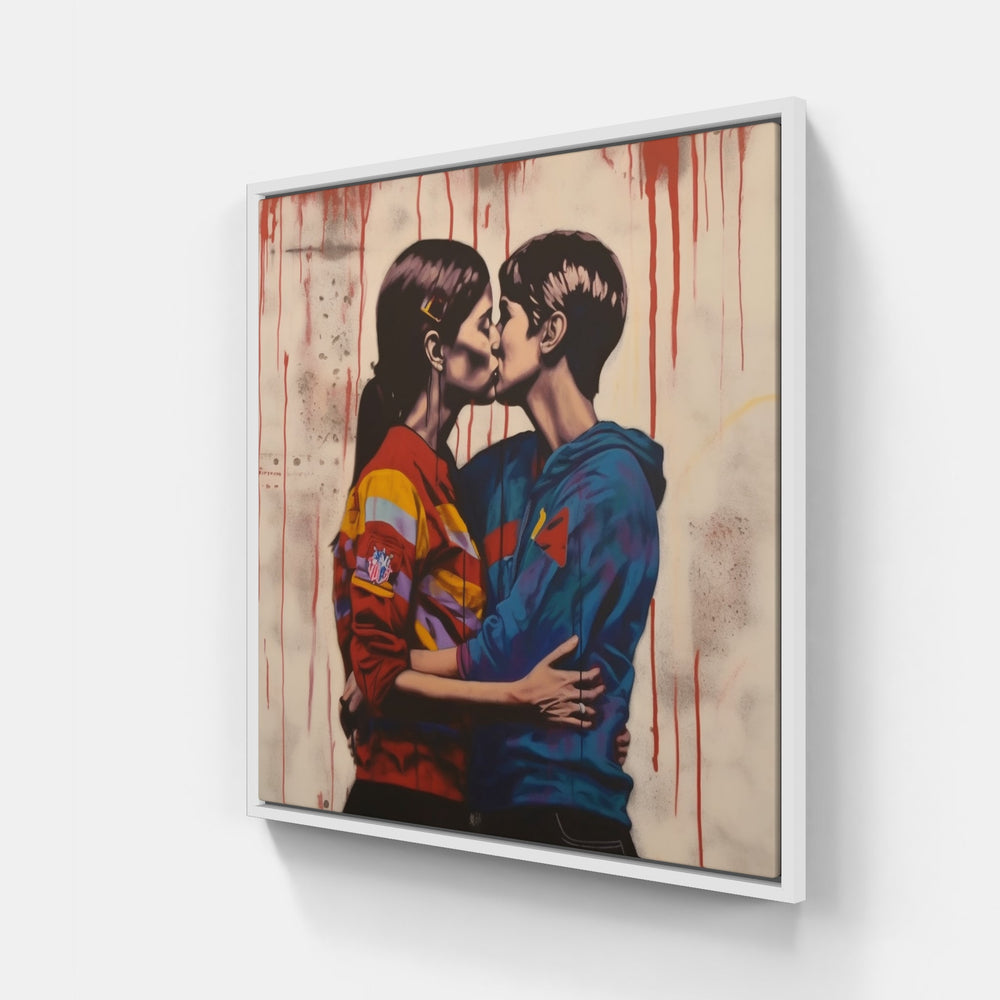 Moments captivants : baiser gay sur canva imprimé. Embrassez la magie de l'affection et chérissez l'expression de l'amour.
