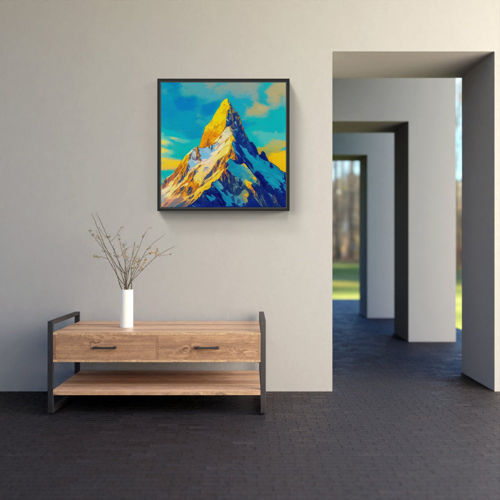 Transportez-vous vers des hauteurs à couper le souffle grâce à cette superbe canva imprimée. Son design sur le thème de la montagne et ses couleurs sereines créent un sentiment d'admiration et d'émerveillement.