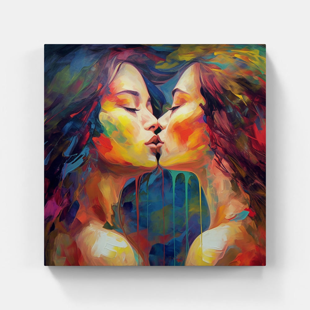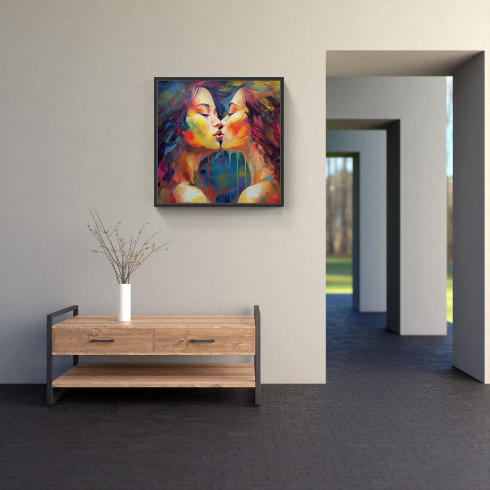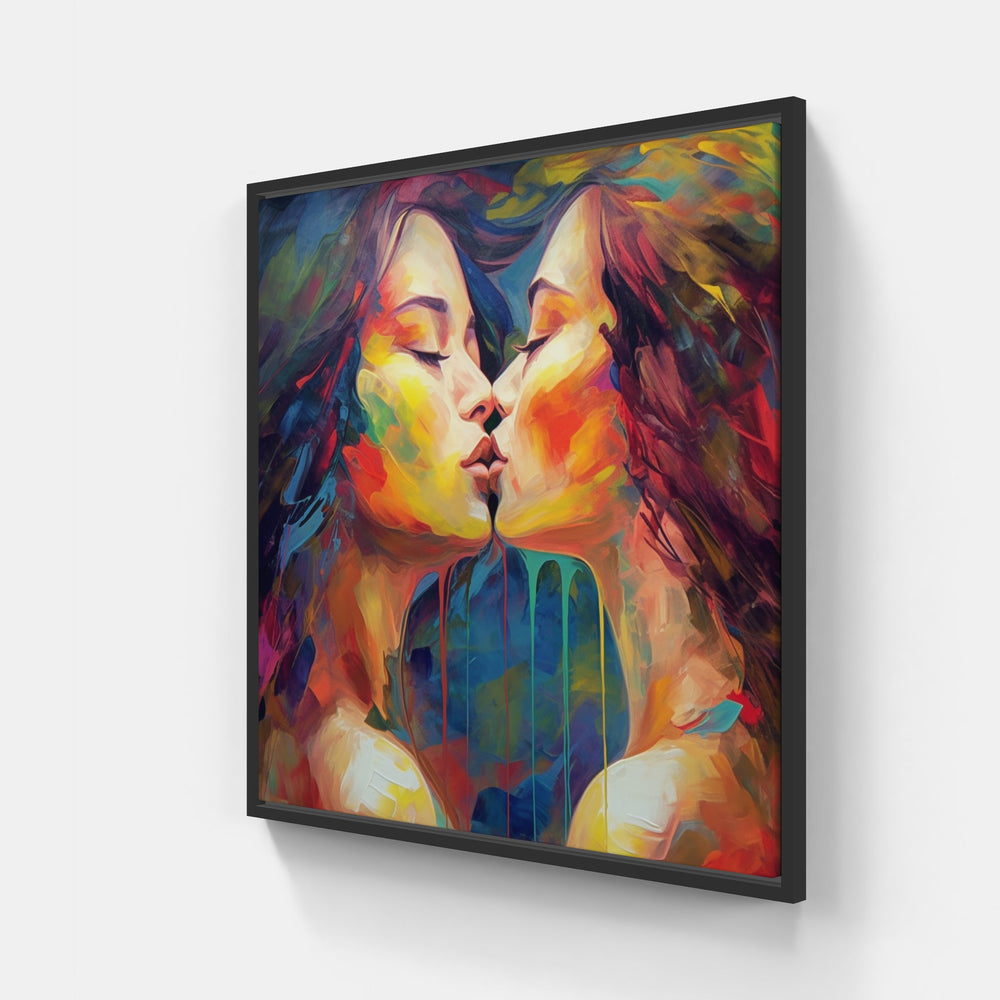 Amour sans fin : baiser homosexuel sur canva imprimé. Cette œuvre d'art symbolise l'affection et l'unité et enrichit votre espace d'amour.