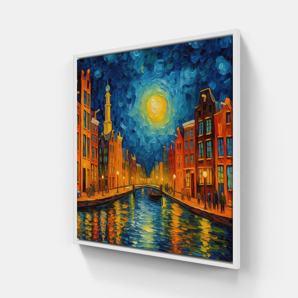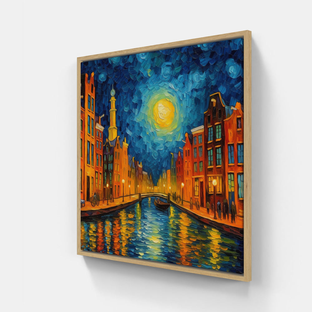 Découvrez l'esprit animé d'Amsterdam grâce à cette toile imprimée captivante. Laissez les couleurs vibrantes et les scènes animées des cafés et des vélos de la ville revigorer votre décor.