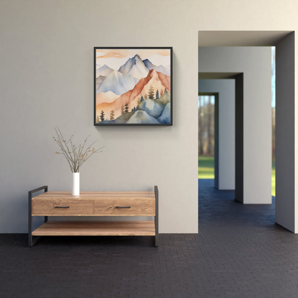 Transportez-vous vers des hauteurs à couper le souffle avec cette canva imprimée envoûtante. Son design sur le thème de la montagne et ses couleurs sereines créent un sentiment de crainte et d'émerveillement.