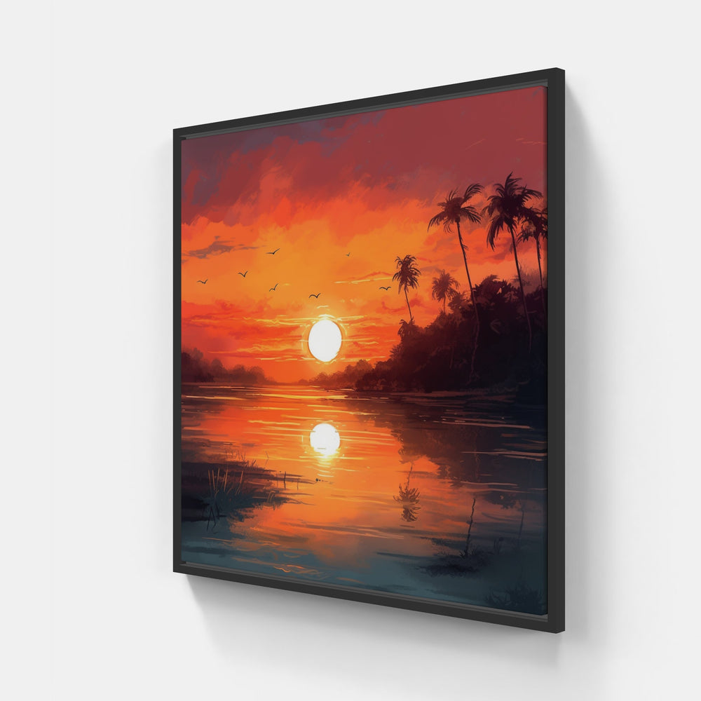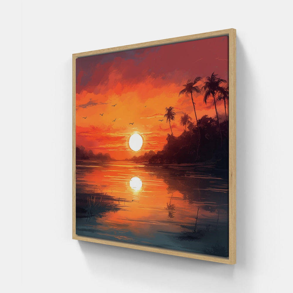 Soyez témoin de la magie d'un coucher de soleil époustouflant avec cette canva imprimée envoûtante. Son imagerie sur le thème du coucher de soleil et ses couleurs vibrantes confèrent à votre espace l'essence d'un ciel crépusculaire.