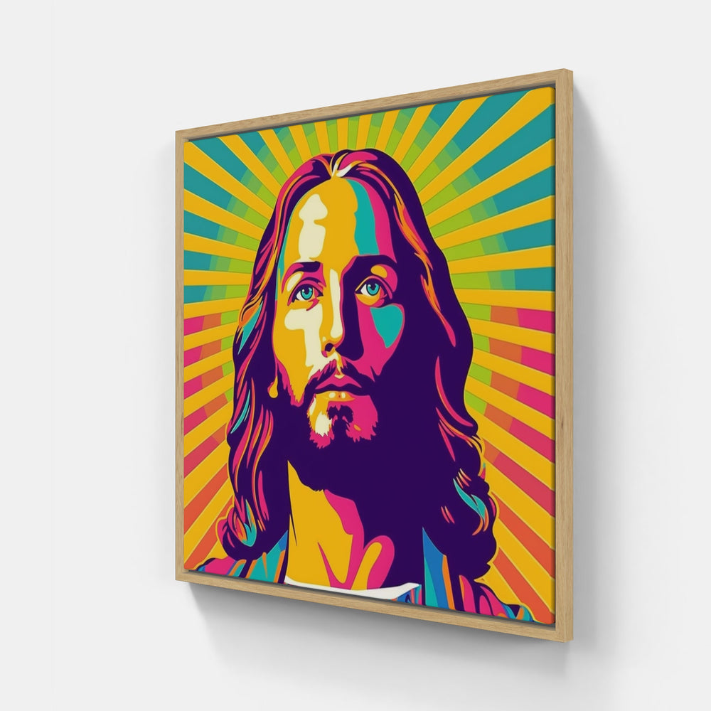 Jésus sacré réimaginé : Notre canva imprimé Pop Art Jésus incarne la spiritualité et la compassion dans un hommage vibrant à la culture pop.