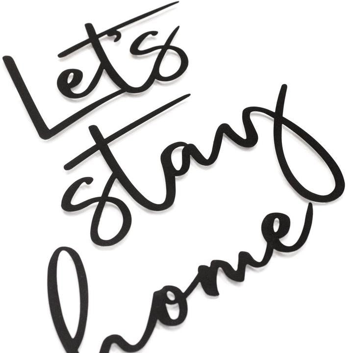 Cette décoration murale métal stay home vous permet de créer un espace cocooning dans votre intérieur avec une citation originale. Avec un style épuré et tout en rondeur, ces mots feront parler les murs de votre pièce avec une touche design et métallique qui mettra en valeur vos inspirations. Parfait pour un salon ou une chambre, cette décoration murale métal peut facilement s’accrocher avec des cadres ou tableaux.Voici les dimensions de cette décoration :"Let's" 31cm x 18cm"Stay" 34cm x 28cm"Home" 32cm x 17cmToutes nos décorations en métal sont traitées avec une finition noire pour une meilleure durée de vie et une qualité unique.