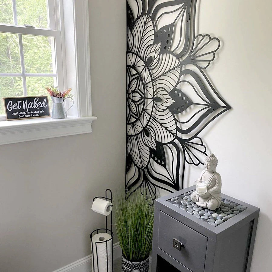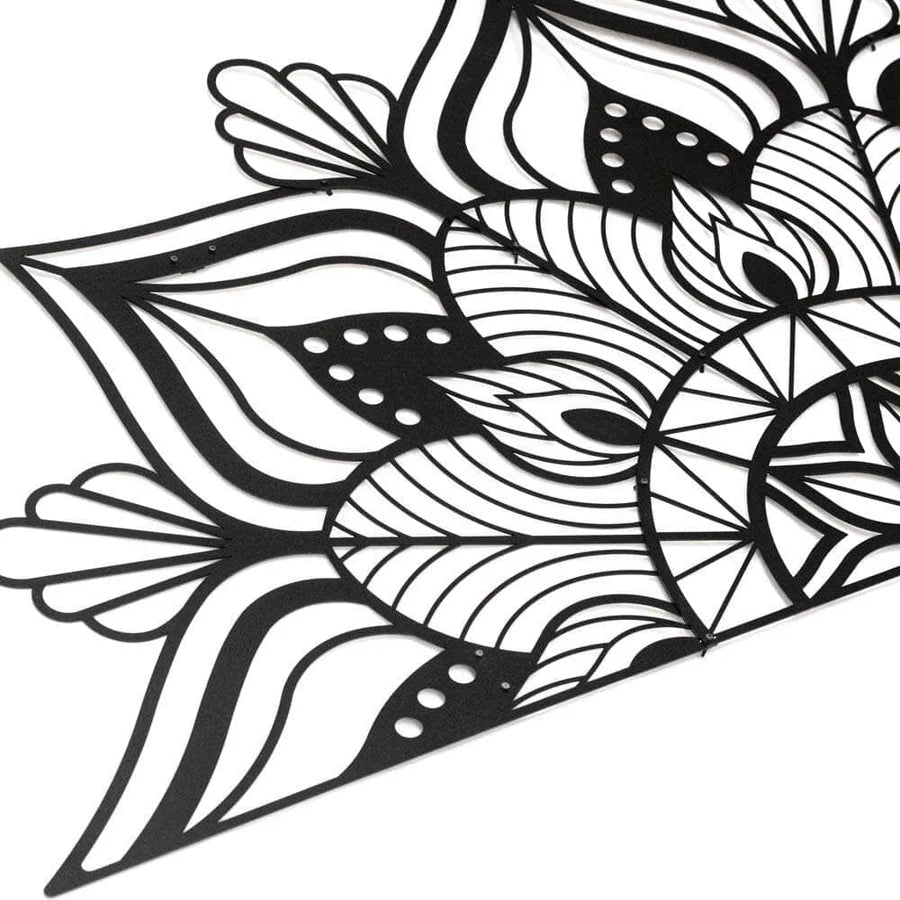 Vous souhaitez une grande décoration murale en métal dans votre intérieur ? Ne bougez plus, cette sculpture vitraux est faite pour vous ! Avec un style largement inspiré par les mandalas, cette déco métallique vous propose pleins de détails et un design original pour votre maison. Vous souhaitez l'installer dans votre salon ? En verticale ou à l'horizontale, cette décoration en métal sera l'objet parfait au-dessus de votre canapé ! En tête de lit ? Contemplez nos photos et vous verrez que cet art mural métal sera aussi une œuvre d'art parfaite pour votre décoration de chambre.Design unique : Cette inspiration est pensée et réalisée par nos designers Artwall and Co pour un décor industriel et tendance.Création de nos décorations en métal : Chaque sculpture est traitée avec une finition noire pour une meilleure durée de vie et une qualité unique.Installation facilitée : Avec un système d'attache particulièrement pensé pour la décoration intérieure, cette décoration murale métal design peut se fixer sur n'importe quel mur.Livraison et emballage : Livraison gratuite et sous protection pour un envoi en toute sécurité par notre équipe Artwall and Co.