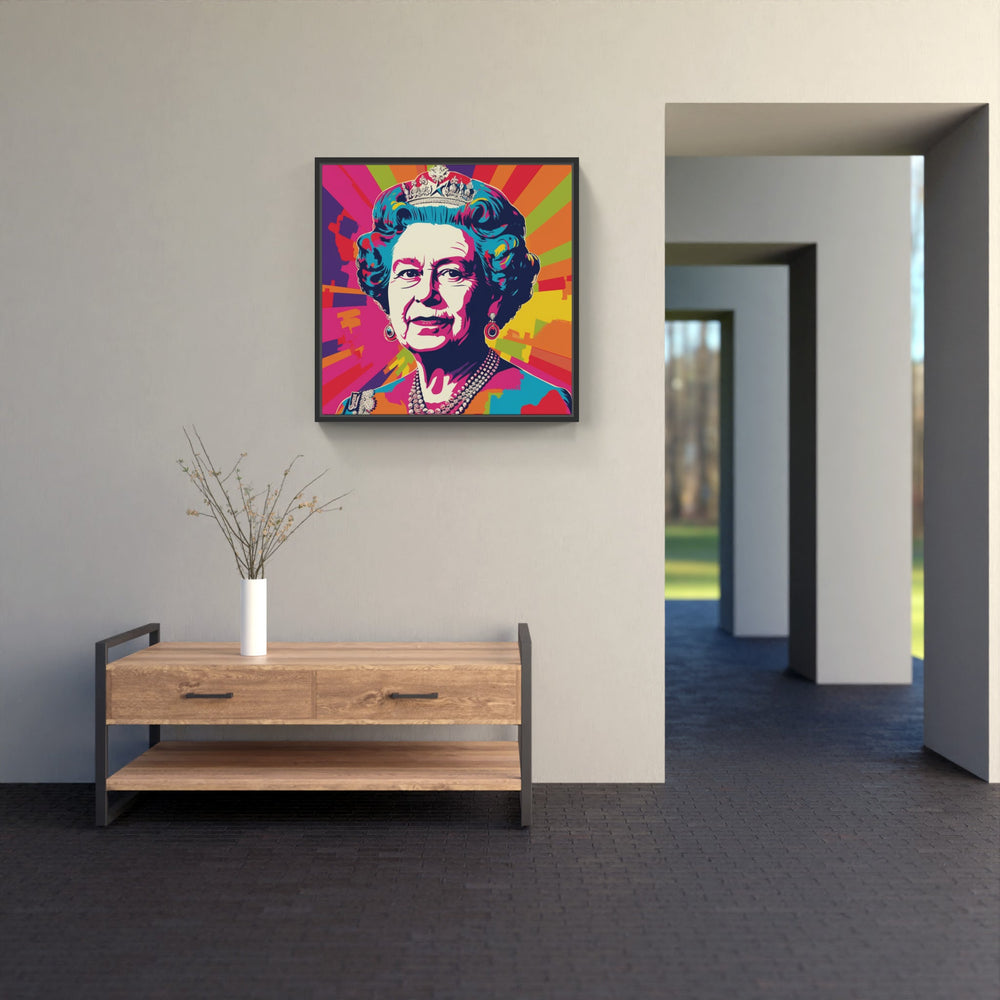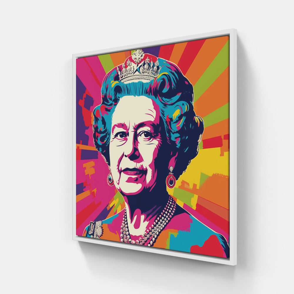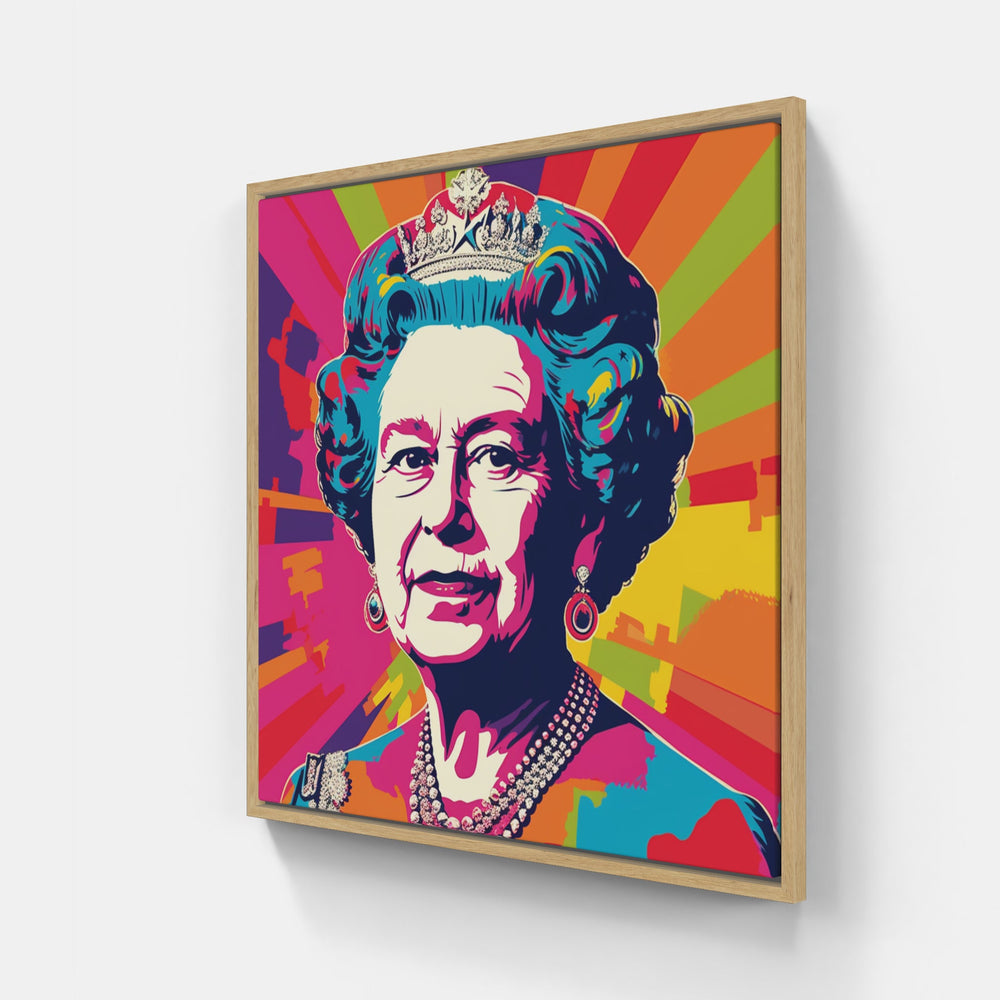 Regal Elizabeth Reimagined : Notre canva imprimé Pop Art Elizabeth incarne l'élégance et l'histoire dans un hommage vibrant à la culture pop.