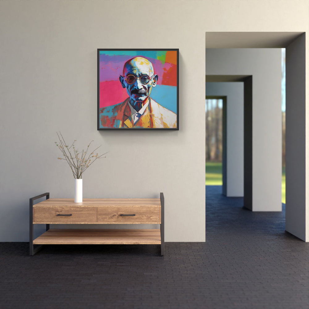Le Gandhi spirituel ressuscité : Notre canva Gandhi imprimé en Pop Art incarne la sagesse et la paix dans un hommage vibrant à la culture pop.