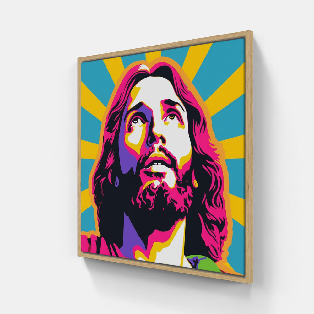 Jésus sacré réimaginé : Notre canva imprimé Pop Art Jésus rayonne de spiritualité et de compassion dans un hommage vibrant à la culture pop.