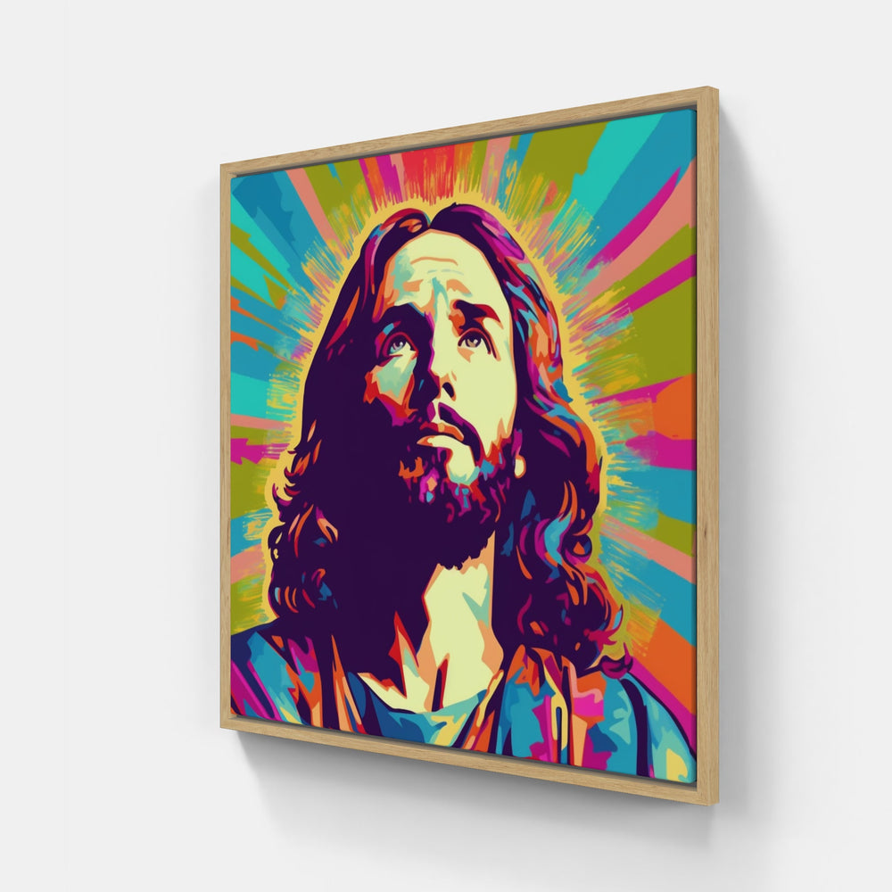 Jésus sacré réimaginé : Notre canva imprimé Pop Art Jésus rayonne de spiritualité et de compassion dans un hommage vibrant à la culture pop.