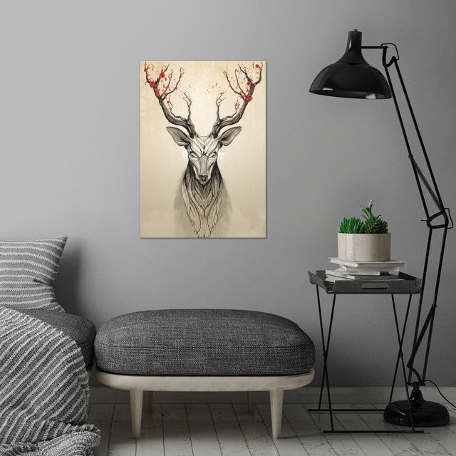 Le buste du majestueux cervidé a toujours servi de décoration murale dans les maisons occidentales, que ce soit sous forme de tableau ou de poster, entre autres. Artwall and Co vous permet cette fois de l’avoir sous forme de poster métal design d’assez grande taille, capable d’orner avec élégance votre mur. Une image saisissante et empreinte de mysticisme est posée sur la décoration murale métal, représentant le cerf avec des arbres aux fleurs rouges en guise de bois. Une véritable œuvre d’art qui joue sur l’ambivalence d’un dessin aux teintes simples, mais savamment agencées. Le poster métal est capable de décorer n’importe quelle pièce de votre appartement.Ce poster mural métal est réalisé par nos artistes et est livré avec son système d'attache aimanté.