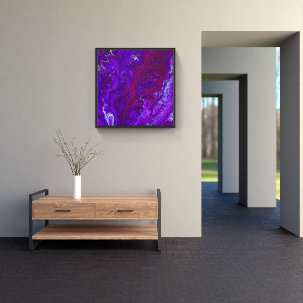 Cette superbe toile imprimée représente une peinture abstraite vibrante. Une variété de couleurs est utilisée pour donner de la profondeur et de la vie à l'œuvre, tandis que le violet domine l'ensemble de l'image, apportant un sentiment d'admiration et de mystère. Cette toile apportera une énergie et une couleur uniques à votre intérieur.
