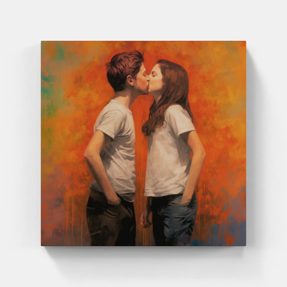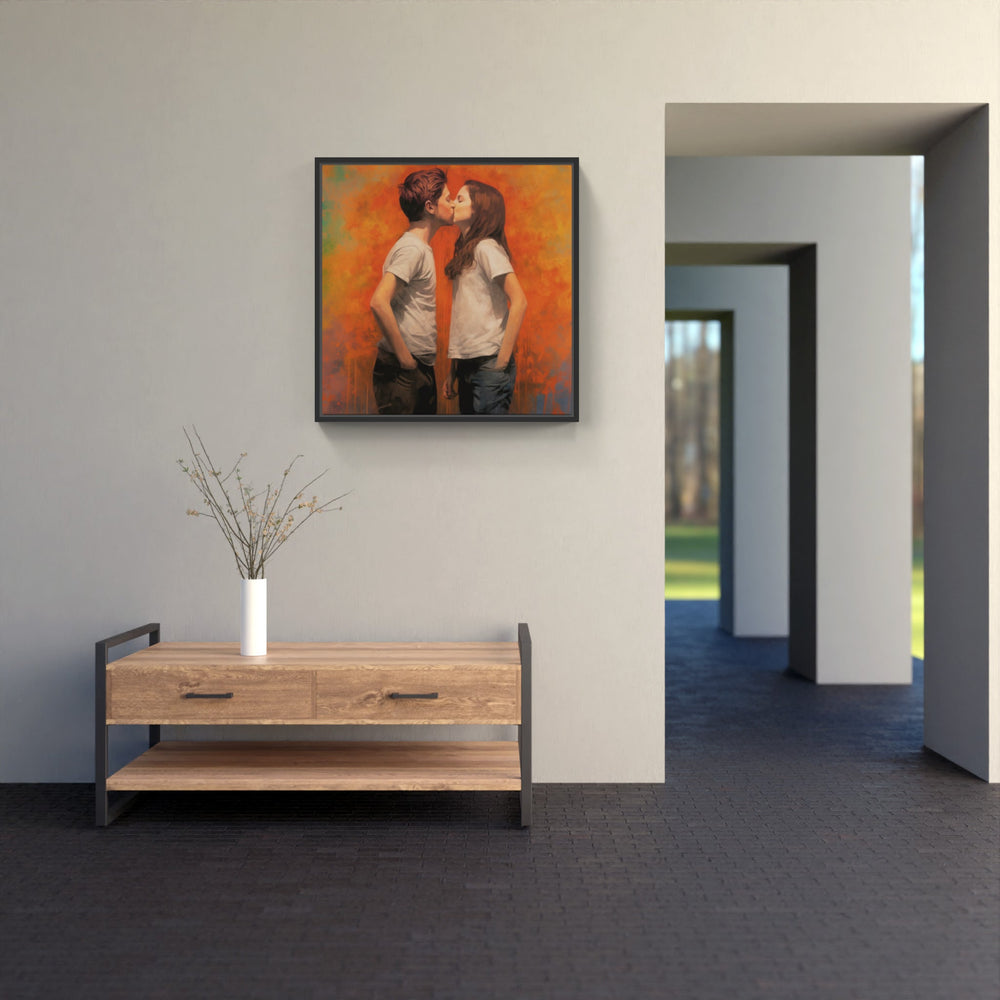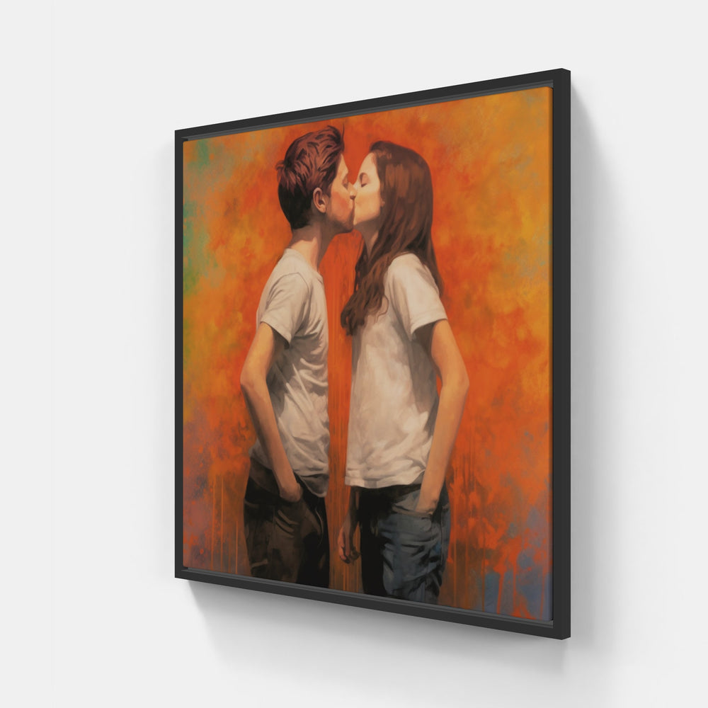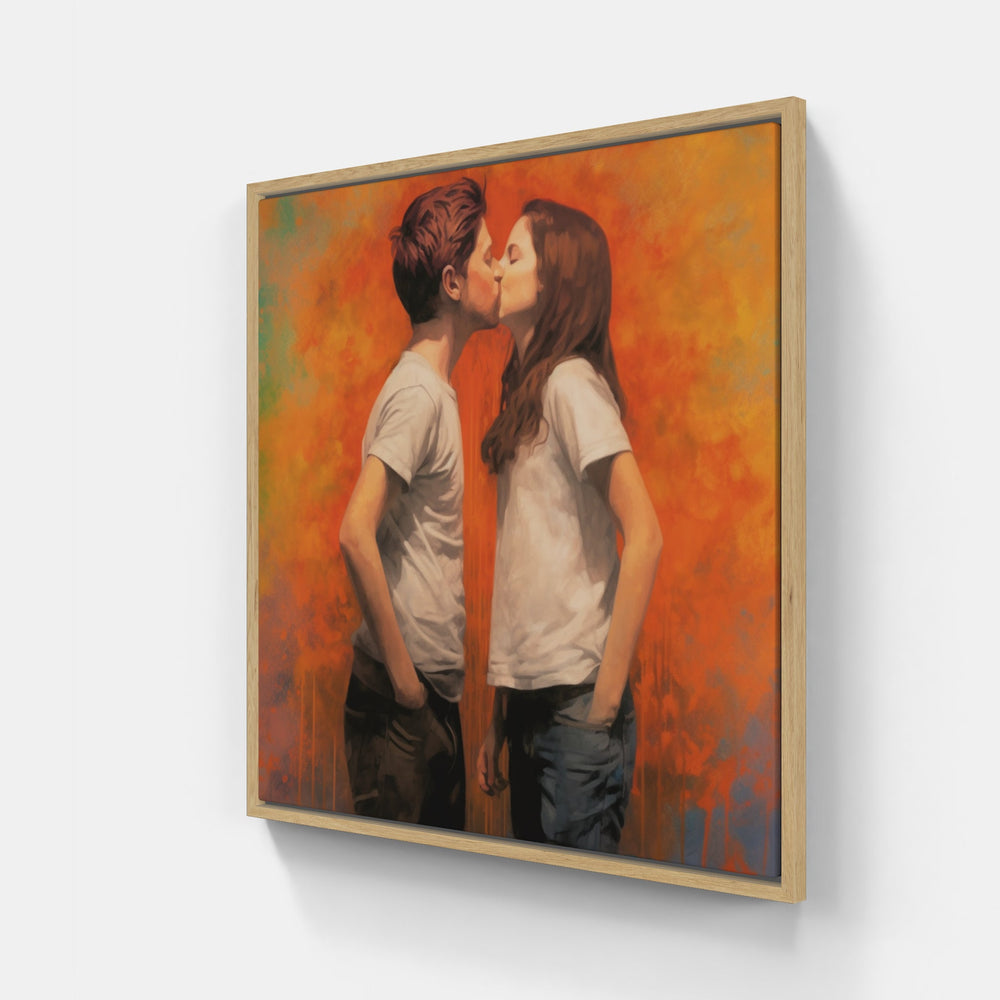 Enchantement romantique : baiser homosexuel sur canva imprimé. Laissez cette œuvre d'art expressive inspirer l'amour et l'inclusivité dans votre espace.