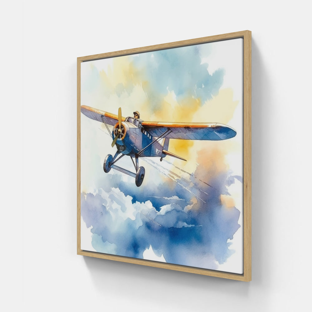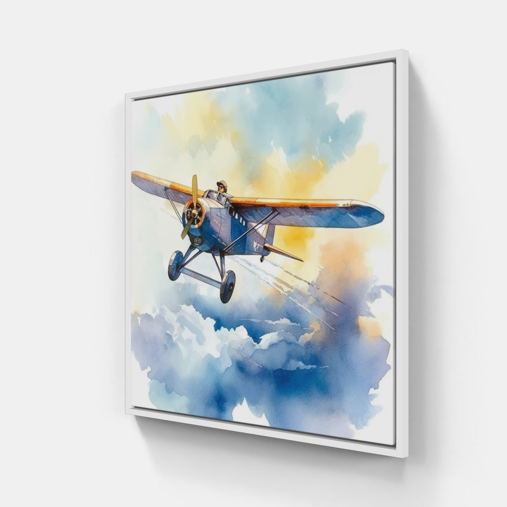 Entrez dans le monde de l'aviation avec cette captivante canva imprimée. Ses visuels élégants et sa palette de couleurs sophistiquée insuffleront un sentiment d'aventure à votre espace.