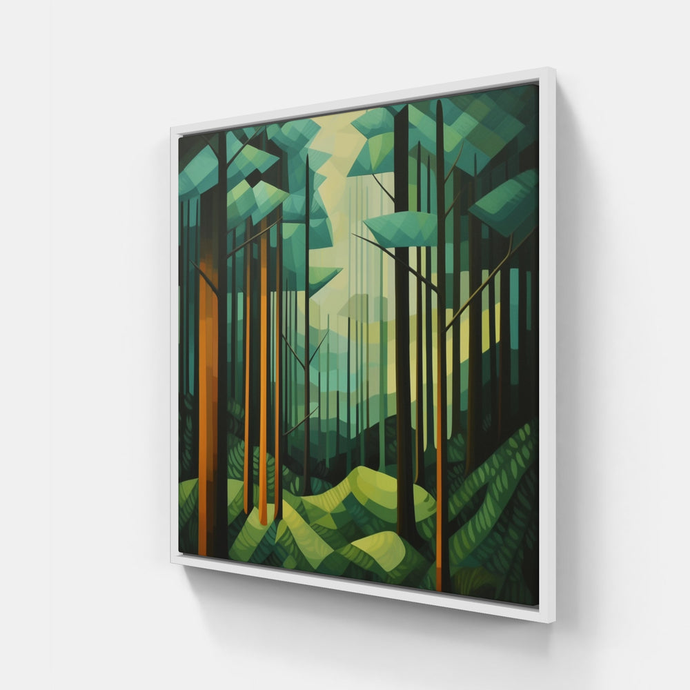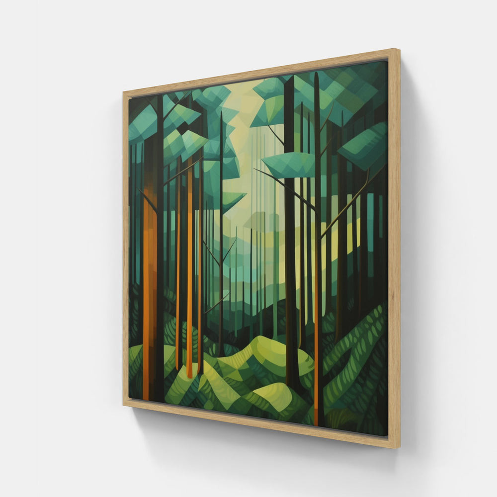 Transportez-vous dans une paisible clairière forestière grâce à cette magnifique canva imprimée. Sa conception sur le thème de la forêt et ses tons terreux créent un sentiment d'harmonie et de beauté naturelle.